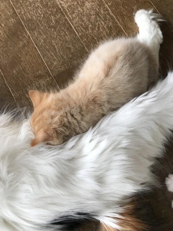 | 特徴(性格など) | 母猫ノルウェイジャンフォレスト 父猫スコティッシュ 親猫は2匹とも血統書付き 母猫が1歳未満だった事も不妊手術を怠っていたら先住猫1歳のオスのスコティッシュとの間に子猫です。 |
