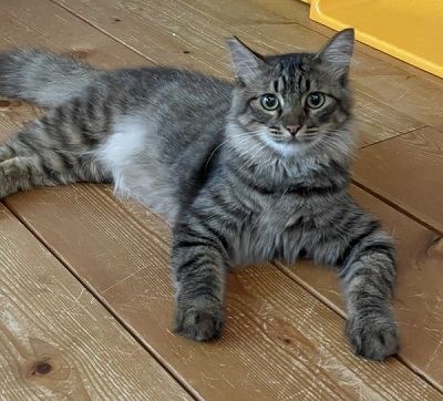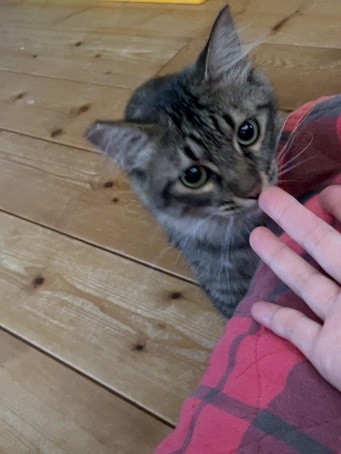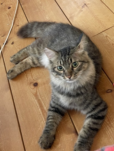 | 特徴(性格など) | 長毛のキジトラで、尻尾がタヌキのようで可愛いです とても食いしん坊! ビビリ君なので初めは逃げ腰ですが、色んな物に興味がありよく遊びます 抱っこはまだ出来ないので、気長にお付き合いしてください。 |