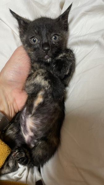 | 里親募集する理由 | 母猫がいなくなり、生まれて間もない時に保護しました。 へその緒がついていたので、生後2日程度で保護し、ミルクで育ちました。 順調に成長し、元気なので里親さんを募集します。 |