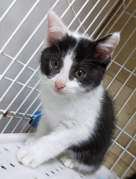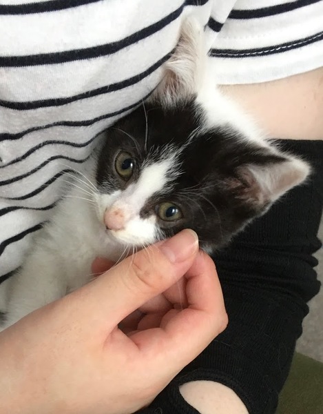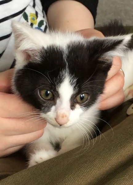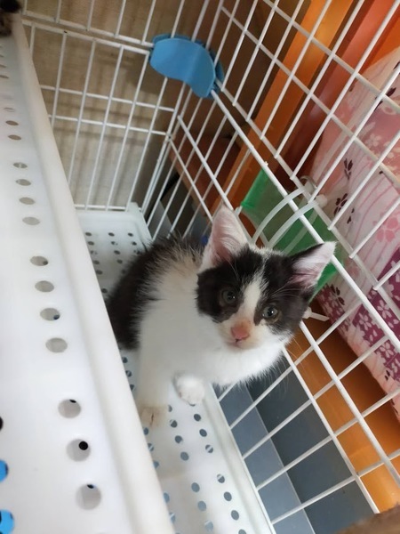| 特徴(性格など) | パンダ柄のハチワレの女の子。 慎重派ですが、人慣れしており、甘えん坊になってきました。 撫でるとゴロゴロ甘えてきます。 トイレの躾も済み。 |