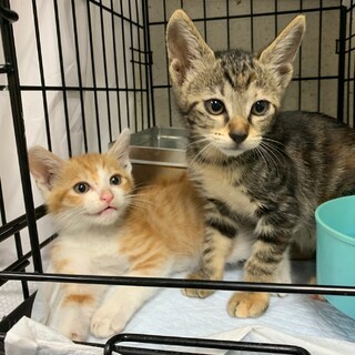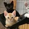 | 特徴(性格など) | 元気一杯、健康です。 食べ盛り、遊び盛り、育ち盛り、可愛い盛りです。 6兄妹ですが、2兄弟は里親さんが決まりました。 アメショ白…♀三つ葉 サビ…♀よもぎ 黒…♀胡麻 アメショ…♀豆 |