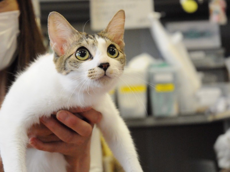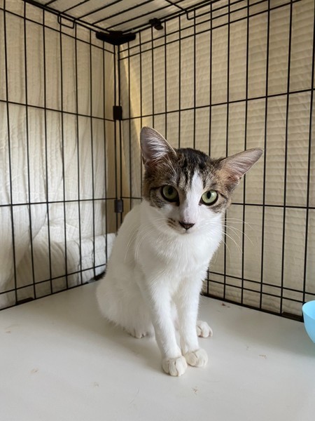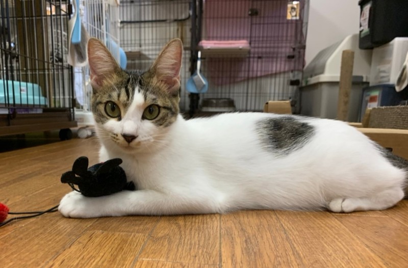 | 特徴(性格など) | 2020.5.15生まれ(推定) 毛色:キジ白 ふんわり白多めのボディの所々にキジトラ模様が入った女の子♀ まだ1歳になったばかりで、遊びたい盛りのスフレは、 ケージから出すと1人でオモチャを狙って走り回って遊ぶ活発な女の子♪ いつもは大好きなママ友・マカロンの傍にピッタリと寄り添っていますが、 新しい環境でも隠れたりしないで探検に行くタイプです! 人懐っこい性格で、スリスリと寄ってきてくれるとってもカワイイ子です♡ 新しい家族に見守られ、のんびり第二の猫生を過ごせるお家を探しております☆ |
