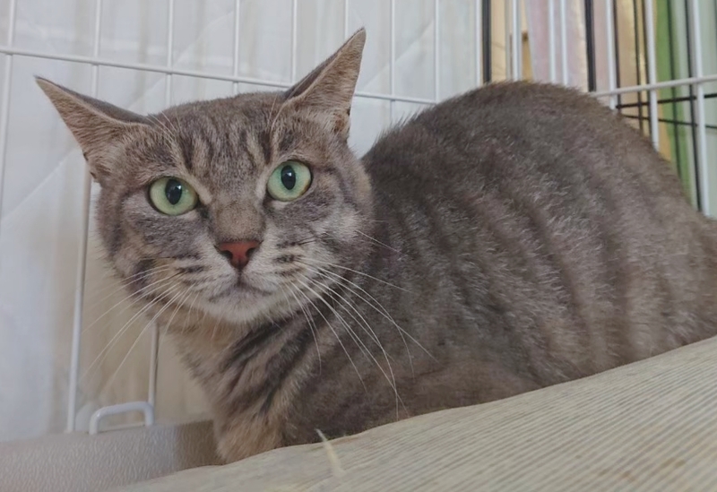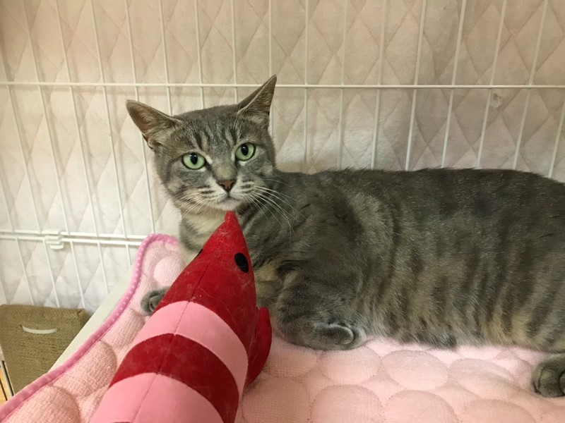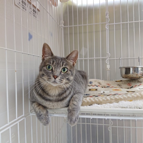 | 特徴(性格など) | 2019.11.14生まれ(推定) 毛色:サバトラ きれいなサバトラ、正統派美人の女の子。 美しい毛並みとクキッとしっかり曲がった幸せのカギしっぽがチャームポイント♪ ちょっと勝ち気なところがあって、嫌な事をされると「やめてよ~」とパシッ!と 猫パンチしっかり意思表示する事もあるけれど、本当はナデナデ大好きな可愛い女の子です♡ 怖がりさんな一面もあるので、慣れるまで優しく見守ってくれるご家族を大募集! 幸せのカギしっぽで、新しい家族の元にも大きな幸せを掴んできてくれるはず★彡 |