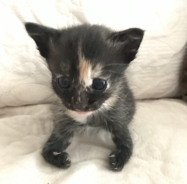 | 里親募集する理由 | 野良猫が3匹産んだ内の1匹です。 親猫共に保護しています。 先天性の障害で、両手が曲がっています。 人間で言えば肘をつくような形で歩いています。 少し高い所からも飛んでいます。 兄弟とも元気に遊んでいて、自身は障害のことは気にしてないように思います。 よく後ろ足だけで立ち上がり、ミーアキャットのようになっている姿がとっても可愛くて、目も垂れ目で美人さんです。 障害があるためなかなか厳しいとは思いますが、どうか幸せになってほしいので、良い飼い主さんに出会えることを願っています。 |