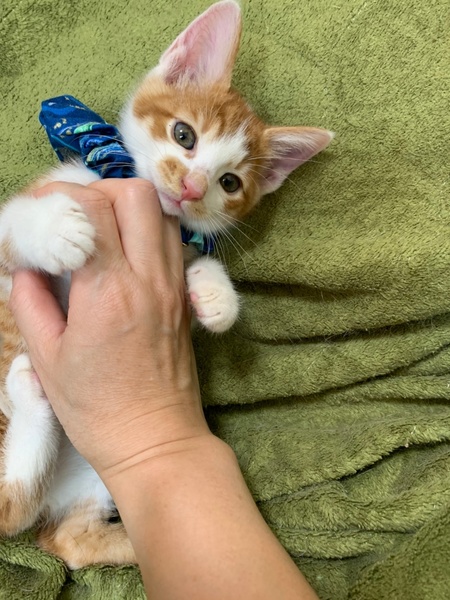 | 特徴(性格など) | とっても甘えん坊の茶白くん 近づくだけでゴロゴロと爆音で喉を鳴らし、抱っこしてほしいとアピール? よく食べよく遊ぶやんちゃ盛りです✨ ワクチン1回済(7/20頃2回目予定) エイズ白血病検査 6/20済 陰性(潜伏期間が終了する7/18頃2回目の検査予定) 検便1回済(近日2回目予定) 駆虫済 ノミダニ駆除済 |