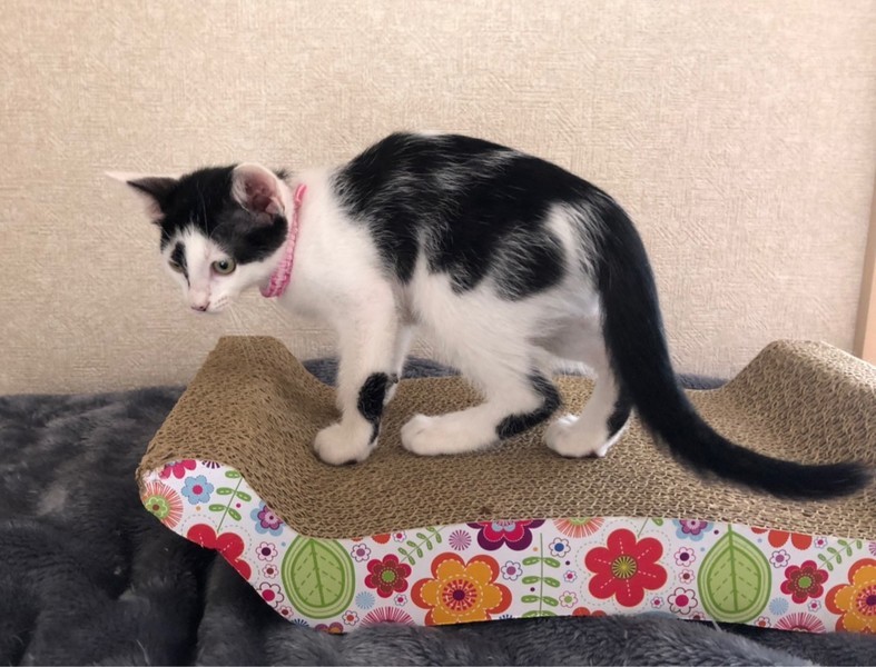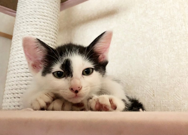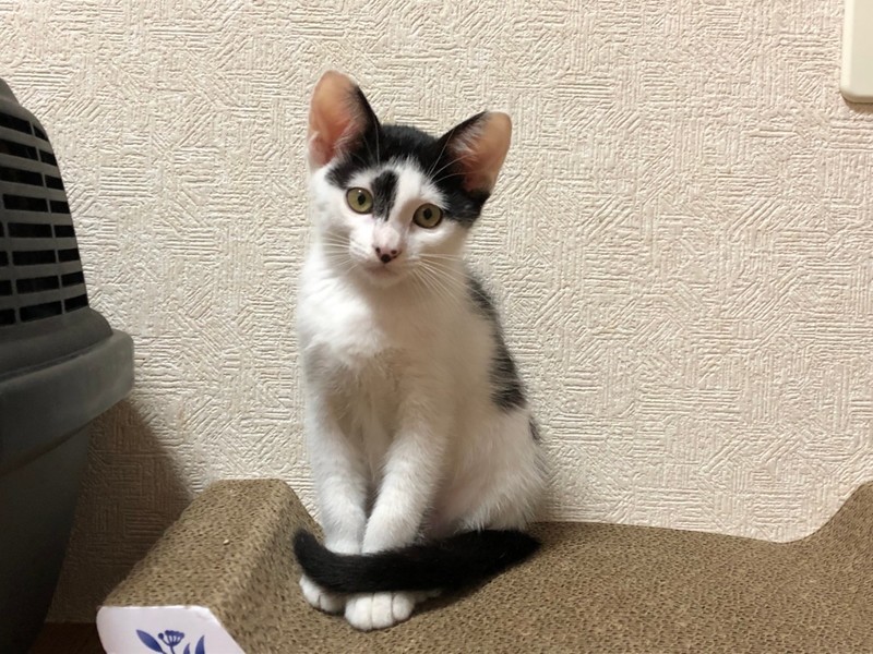 | 特徴(性格など) | 2021.4.13生まれ 毛色:白黒 鼻筋にすーっと入った模様と優し気な表情が女の子らしい白黒女の子♪ じーっとこちらを見つめる瞳がとっても可愛らしい凪沙ですが、 鳴き声は可愛らしい表情とはギャップを感じる、低音ボイス! そして、とっても負けず嫌い!!兄妹からにゃんプロを挑まれると、男の子相手でも 低音スキーボイスを連発しながら食らいつきます! 物音には敏感なタイプで、オモチャが動き出すと、 びっくりして遠巻きに様子を伺っている姿もとっても可愛いです♡ お鼻にある隠れミ〇キーを見つけられるかな☆彡 |
