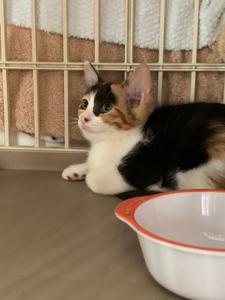 | 特徴(性格など) | 怖がりですが慣れると甘えたになりそうです。 末永く安心して暮らせるおうちの仔になってほしいです。 一緒に保護した姉妹の「うめ」と仲良く一生懸命遊んでよく食べてよく寝て元気一杯です。 ずっと一緒に育っているのでできれば姉妹一緒の迎え入れがベストですが単独でもオッケーです。 |