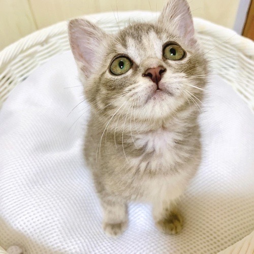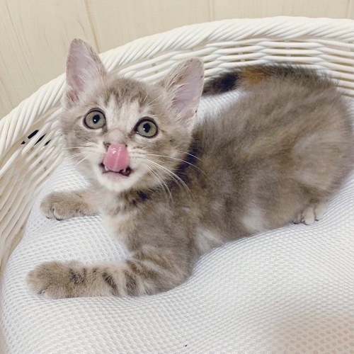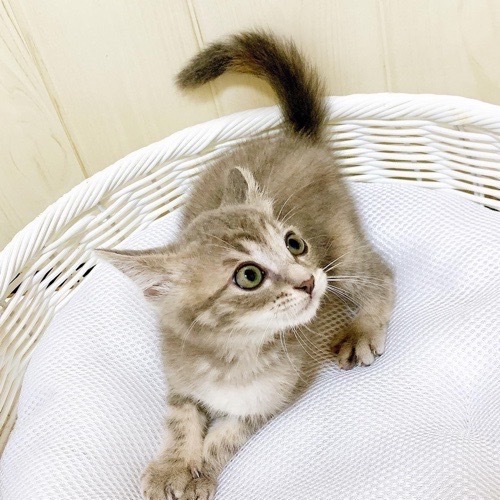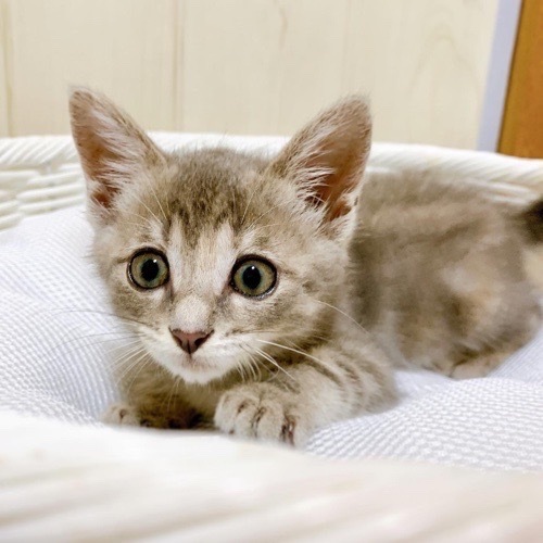 | 特徴(性格など) | 淡いグレーのアメショ模様、 しっぽにオレンジの差し色が入った とても珍しい色柄の女の子です。 純真無垢で、天真爛漫! 人やワンちゃんに可愛がられて育ったので 警戒心ゼロの怖いもの知らず。 いつでも誰とでも 遊びたくて仕方がないようです♪ はじめての猫を迎える方や お子様がいるご家庭にもすぐに馴染めるかと思います。 たくさん可愛がって、 脱走対策が万全なお家にお迎えいただきたいです。 |