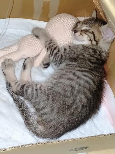 | 里親募集する理由 | 4兄妹は、会社の防犯カメラに映らない死角の駐輪場に捨てられていた仔猫です。 猫を飼っていたこともあり見捨てられず一時保護をすることにしました。 先住猫とも相性が良く仲良く遊んでいますが 6匹飼える環境ではないこと 飼い主2人とも猫アレルギーであるため新しい家族の元で幸せに暮らして欲しいと思い募集しています。 |
