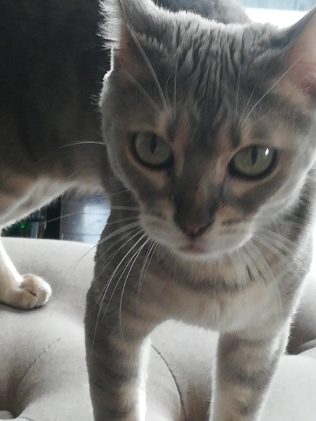 | 特徴(性格など) | 遊ぶのが好きで甘えん坊です 高いところが好きです ちょこんと絶妙な距離で座ってきます 毛の色はグレーです |