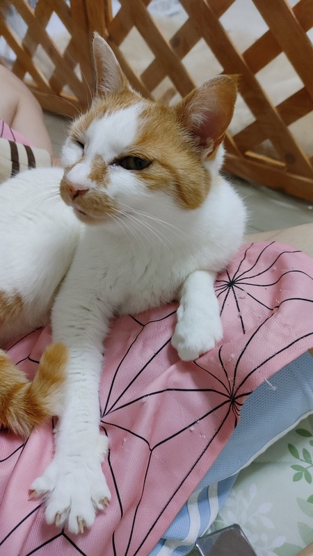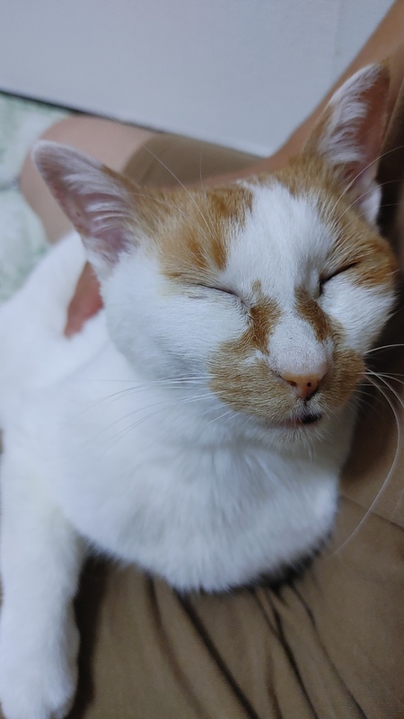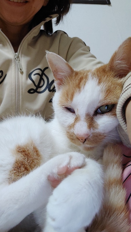 | 特徴(性格など) | 〘モナちゃん〙茶白柄 ☆右目白濁(瞬膜による) ☆エイズ偽陽性(やや薄い) ▪▪▪▪▪▪▪▪▪▪▪▪▪ 〖性格〗 ☆寂しがり屋さんの甘えん坊です。 膝の上に乗りたがりオモチャで遊ぶ時も膝の上が好きで、とにかく人にくっついていたい女の子。 ☆猫よりも人間が好きで目が合うだけでゴロゴロ言います。 ☆歯が犬歯しか残ってません(経緯不明)が 食事には問題ありません。 |