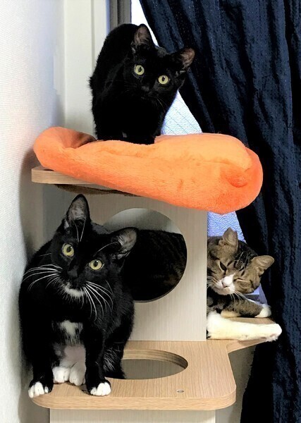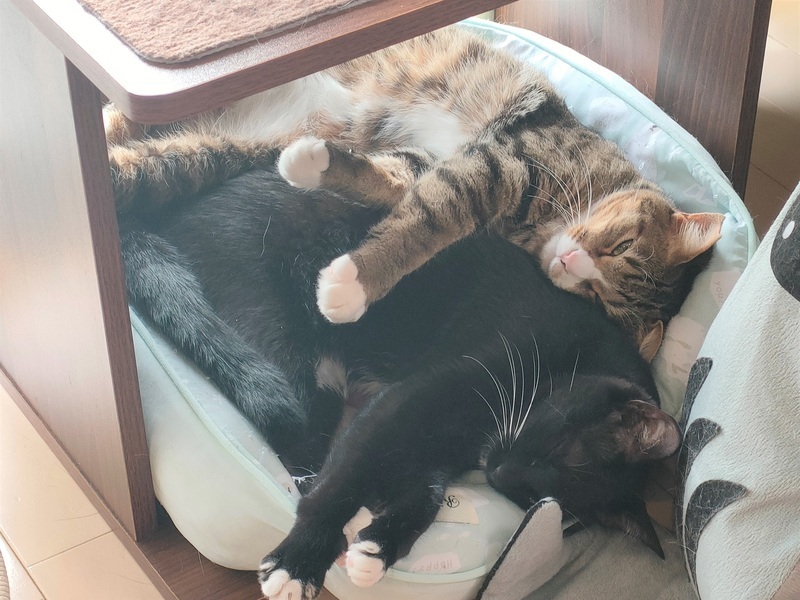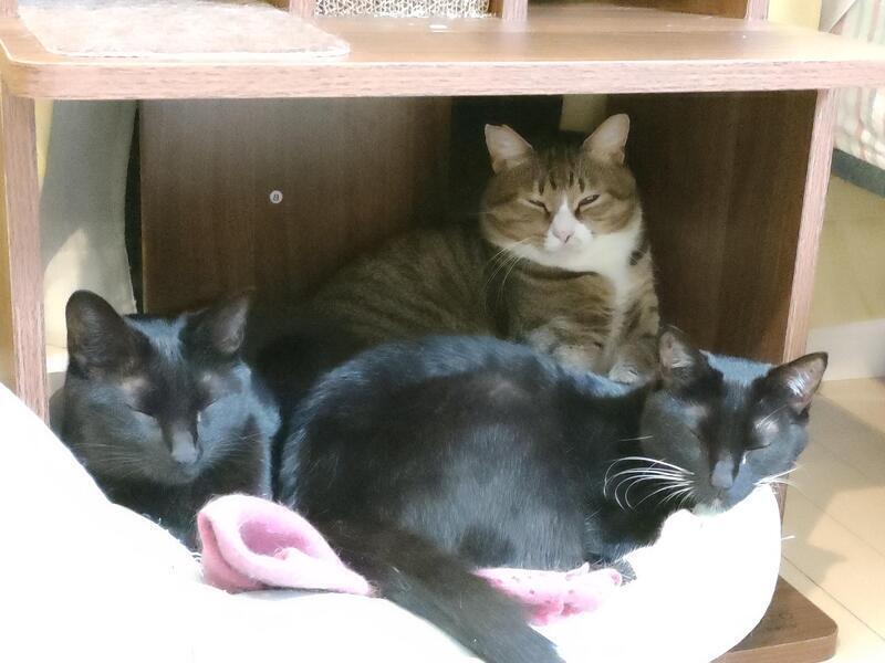 | 里親募集する理由 | 詳しい経緯、紹介はブログをご覧ください→https://teresamama005.fc2.net/blog-category-14.html 保護当初(2020/06)はエイズキャリアであることもあり単体で暮らしていましたが 「絶対に捕まらない母猫テレサ」という母猫から産まれた5匹の子猫たちが2020年11月に保護され、兄弟猫3匹は貰われ、残されたボンとバルの2匹は保護部屋の先輩であるタイガ♂に育てられました。 保護して2年近くたちますがとにかくボンバル姉妹がタイガにべったりくっついて離れません。 タイガ自体は人間が怖く、触ったりだっこできるタイプではないですが猫にはとても優しく、ボンバル姉妹を育てていくうちに人間との暮らしにもなじみ始めました。 何度も単体での譲渡や、姉妹セット、バルとタイガ、ボンとタイガなどと組み合わせで譲渡を試みようとしてみましたが…… なにがなんでもボンバル姉妹がタイガから離れようとせず、どうしてもタイガが居ないと鳴いて探し続けます。 三匹での譲渡がどれほどハードルの高いことか、よくわかっております。 また、タイガは猫エイズ陽性です。が、タイガも好きで陽性になったわけではなく、自分がエイズ陽性であることも知りません。 せめて好きな姉妹と一緒にいさせてストレスなく、未発症のまま生涯を終えることのほうが重要ではないかと獣医さんとも相談し、ボンバル姉妹とは自由に触れ合って過ごしております。 タイガにとってもボンバル姉妹は家族であり、抱きしめながら毎日眠っています。 三匹でのびのびと暮らせる環境を、気長に探し続けております。 ・おうちを賑やかにしたい方 ・三匹がくっついている姿に癒される方 ・タイガが触れなくても大丈夫な方 上記に当てはまる方に推奨致します。 |