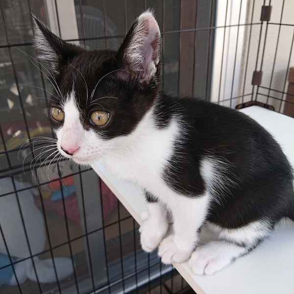 | 特徴(性格など) | 5月中旬に動物病院に連れて行った所肉付きがよく特に問題なしとのことでした。 その際にワクチンを打ちたかったのですが、当時2ヶ月過ぎてなかったのでまだ打ててません。 餌はドライフード、ウエットフード、離乳済み。 トイレは教えたわけでもないのにトイレで出来ます。 爪も爪研ぎダンボールでしてます。 片耳が白く可愛い子猫です。 しっぽはまっすぐです。 来た当初はシャーシャー言ってましたが、最近はゴロゴロ喉を鳴らす程懐いてます。 お風呂は苦手ですが、爪切りは全く抵抗がなくさせてくれます。 写真の最初の三枚は最近の物です。 |