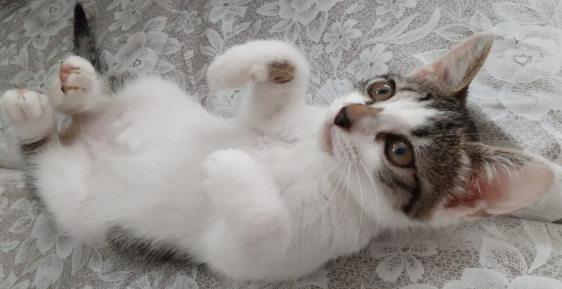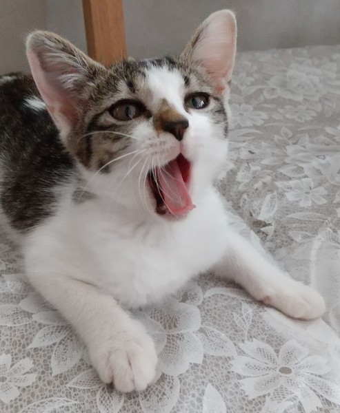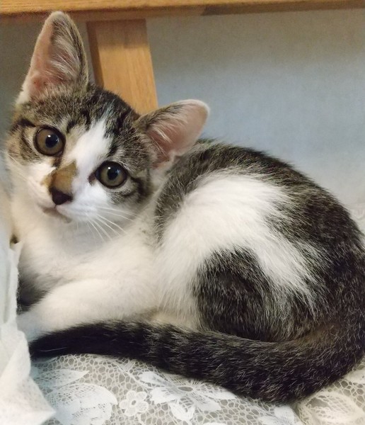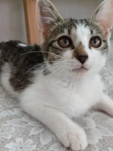 | 特徴(性格など) | ・白&キジ ・女の子 ・生後約2ヵ月 ・1.08kg ・健康チェック&駆虫済 ・先輩猫に物怖じしないヤンチャさんです 保護前に高い所から落ちたのか左上犬歯に欠けと顎に傷がありますが、 歯は乳歯なので生え変わりますし、顎も治ります。 |