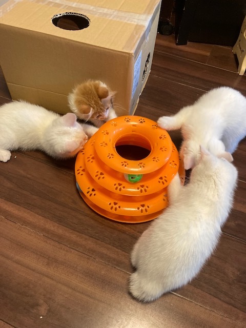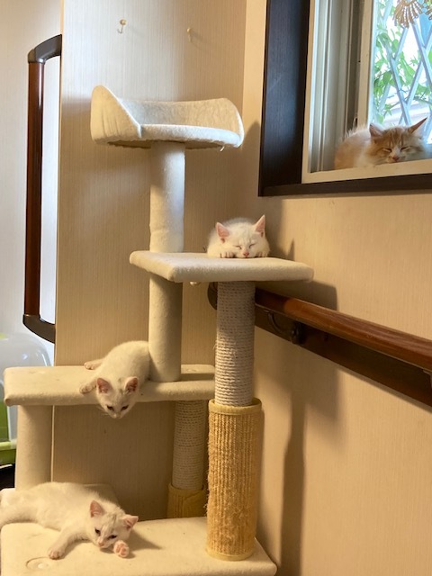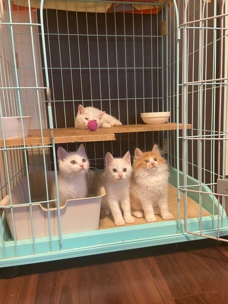 | 特徴(性格など) | 茶白のふわふわ長毛の男の子、白いまるまるした男の子♪ 白にチャームポイントの黒い小さな模様の女の子2匹♪♪ |