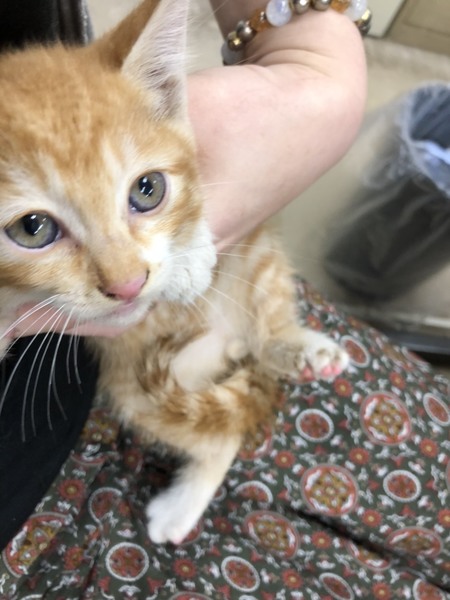 | 特徴(性格など) | 茶トラで、7/15に保護しました。 保護した際は人に警戒していましたが、現在トイレと人馴れ訓練中です。1週間ほどで、慣れるかと思います。 美形です。フロントライン(蚤取り)済。 |