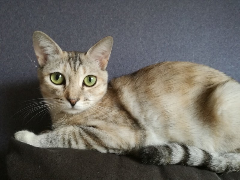 | 特徴(性格など) | 明るく人懐っこいです。温厚なので他の猫達にも優しい良い子で、抱っこが出来ます。綺麗なグリーンアイで可愛い声の女の子です。 | ||