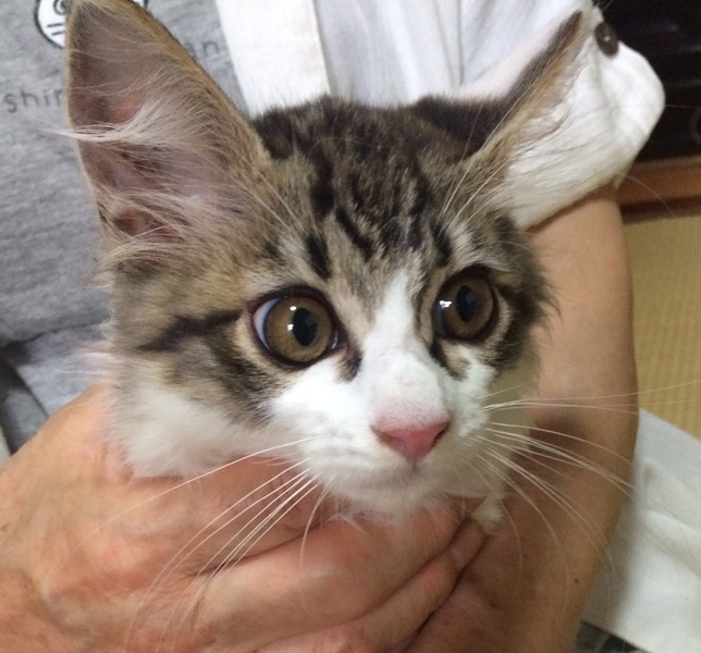 | 里親募集する理由 | 大きな幹線道路の中央分離帯の植え込みの中で鳴いているのを発見、保護しました。 | ||