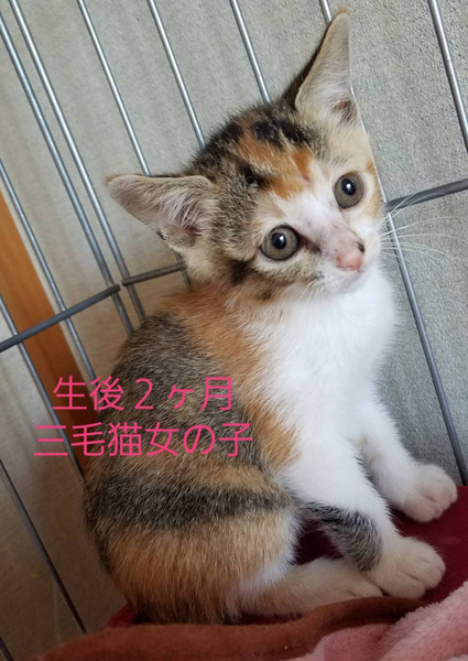 | 特徴(性格など) | 仮名 夏希ちゃん まだ小さいのと一匹で保護された事もあり寂しがりやさんです。 ワクチン落ち着いてから接種予定 ノミダニ駆除 駆虫中です エイズ白血病検査陰性 |