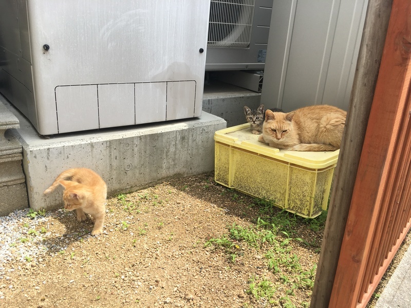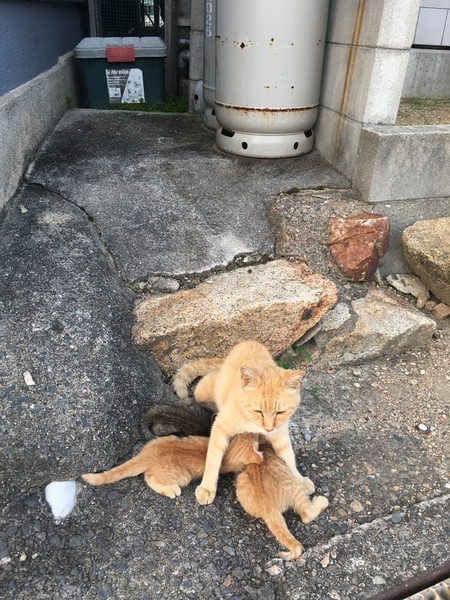 | 里親募集する理由 | まだ寒い頃、地域のメス猫が、民家の軒下で3匹の子猫を出産しました。港町の人たちに温かく見守られ、エサ場と寝る場所を提供されて、ママ猫は一生懸命母乳で子育てをしてきました。ママ猫は人にも慣れています。子供は野良ちゃんなので人への警戒心はありますが、最近は人からもエサをもらっているので、少しは人にも慣れています。猫じゃらしに飛びついて遊ぶのが好き。生後約4ヶ月なので、適度に乳離れしています。キャットフード食べます。 | ||