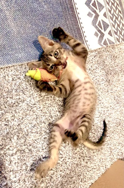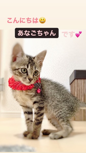 | 特徴(性格など) | ノミダニ駆除済み ワクチン接種済み 便検査済み エイズ白血病陰性 キジトラの長しっぽ、小柄な女の子です。 甘えん坊さんで、他猫との距離感保て、空気読める子です。 遊び好き、活発です。 フミフミしたり母猫のおっぱいを探す仕草をします。 右大腿骨折してありましたが、固まっており、生活には支障はなさそうです。 食欲ありモリモリ食べます。トイレばっちりです。 7/15時点 800gと小柄です。 あーちゃん、と呼ぶと振り向くようになりました。 |
