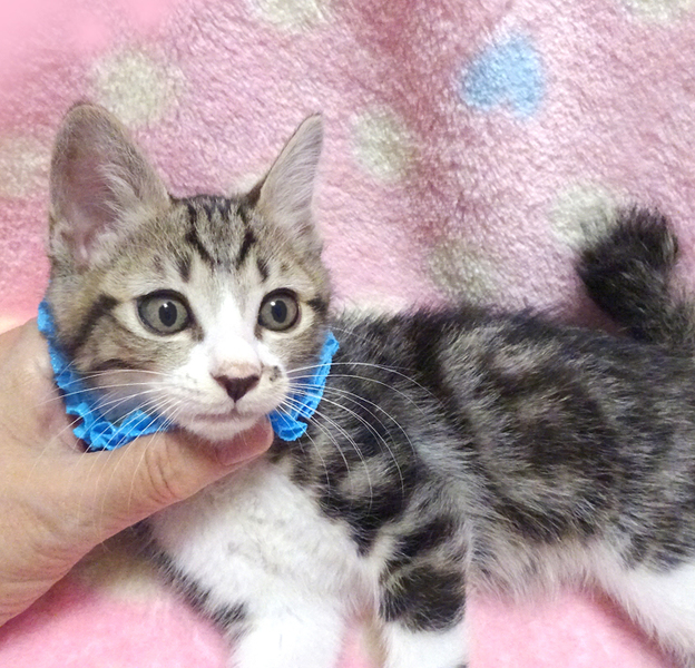 | 里親募集する理由 | 地域の猫の避妊手術活動で幼猫を保護しました。 走っても大丈夫なペット可のお住まいで、家族の一員として生涯大切にして下さるご家族を募集しています。 まだ小さいので猫だけのお留守番が長時間でないご家族を希望します。 |