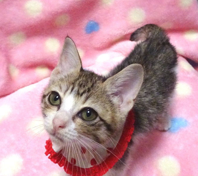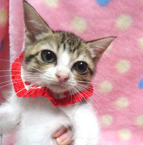 | 特徴(性格など) | 【猫の仮名】 ヒトミちゃん (担当 松嶋) 【毛色・柄】 パッチリした大きな目が可愛いキジ白、短めシッポ おだやかで他の猫とも仲良くしています♪ 猫を飼うのが初めての方でも大丈夫です♪ 走っても大丈夫なペット可のお住まいで、家族の一員として生涯大切にして下さるご家族を募集しています。 ☆まだ小さいので猫だけのお留守番が長時間でないご家族を希望します。 |