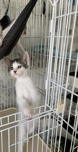 | 特徴(性格など) | シャム系(男の子) シロキジ(女の子) シロキジ(女の子) 健康で子猫らしく遊んでいます。 |