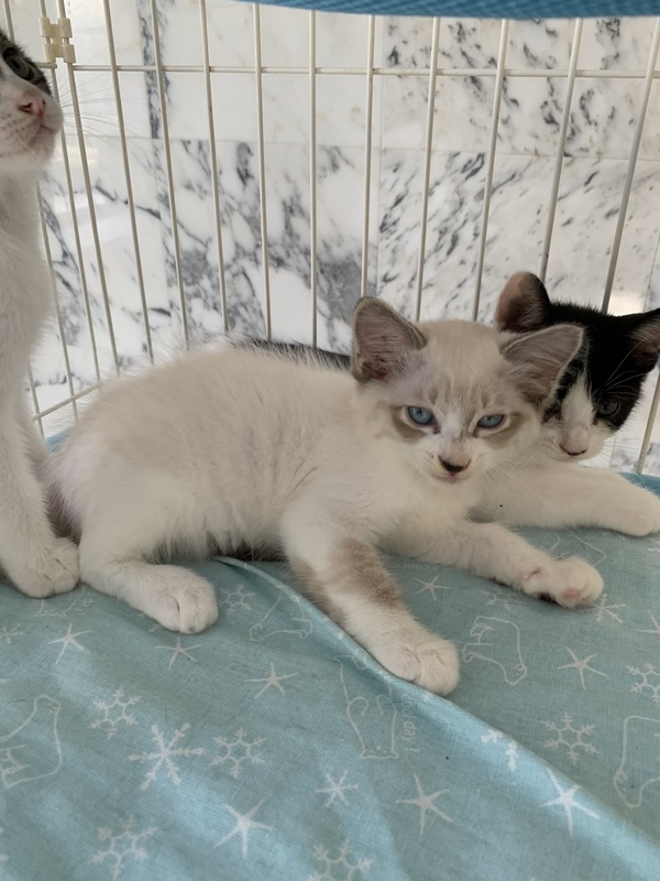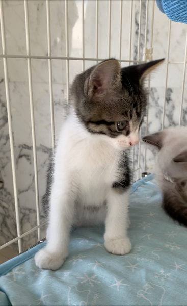 | 特徴(性格など) | シャム系(長毛) ハチワレ キジシロ 健康で子猫らしく元気に遊んでいます。 |