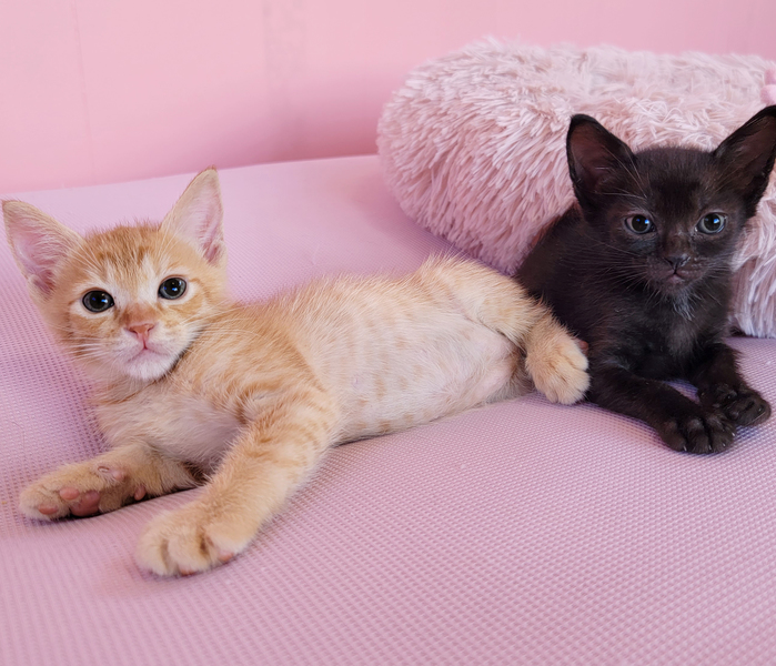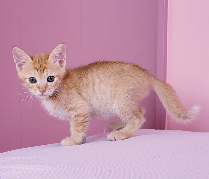| 特徴(性格など) | 【健康状態】 よく食べ、よく遊び、元気いっぱいです♪ シャンプー・ブロードライン(駆虫)済み。 7/9(金) ウィルス検査済み。 エイズ・白血病ともに陰性で問題ありませんでした。 ※お引き渡しの際に、診療明細および領収証をお渡しいたします。 領収証に記載の金額以外は一切請求いたしませんので、ご安心くださいませ。 【特徴・性格】 クリクリお目目が可愛い生後1ヶ月半ぐらいの、茶トラの男の子です。 母猫とはぐれてしまったようで、痩せて衰弱していたため保護いたしました。 尻尾は真っ直ぐで長く、とてもキレイな形をしています。 小さなうちから人の手で育てているため、とにかく人も猫も大好きな子です。 どこでもトコトコついてきて、呼んだら嬉しそうに走ってきます^^ 踏んでしまうのではないかと心配になるので、いつもすり足で歩くようになりました笑 部屋の隅から隅まで猛ダッシュしたり、ソファーの背もたれによじ登ってカッコつけたり... 思いっきり遊び回った後は、兄妹仲良くお膝の上でコロンコロン♪ いつもHAPPYオーラ全開で走り回る姿は、見ているだけでこちらもニコニコ笑顔になっちゃいます^^ 優しい性格をしているので、じゃれて甘噛みすることはあっても、本気で噛んだり、爪を立てることもありません。 初めて猫ちゃんを迎えられるご家庭でも安心して迎えていただけると思います^^ とっても仲良しなので、チョコマカ兄妹で迎えていただける方大歓迎です。 |