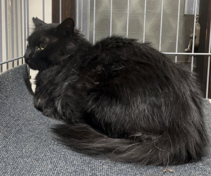 | 特徴(性格など) | 推定8歳くらいの長毛の男の子。 がっちりしていて大柄な体型なのに足が長くてスタイル抜群です。 クールな外見からは想像できないような可愛い声で甘えてきます。 とっても甘えん坊で穏やかな性格の猫ちゃんです。 トイレもとても上手に使います。 夜はケージに入って寝る習慣もついています。 |