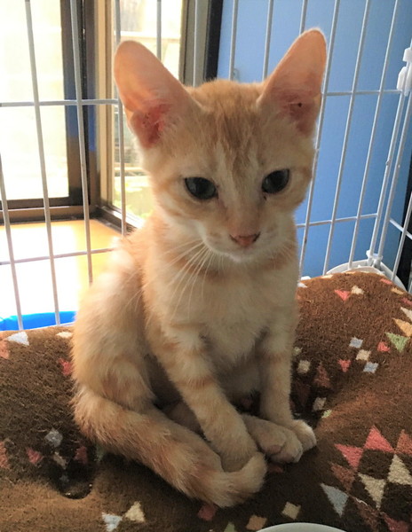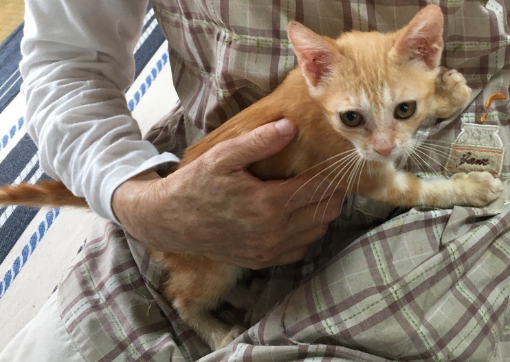 | 里親募集する理由 | 保護猫活動をしています。 同じ町内のHさん宅。おばあちゃんが猫2匹にご飯をあげていたところ、 2匹がそれぞれ4匹ずつ赤ちゃんも産んでしまい、途方に暮れていたところ お嬢さんより連絡がありレスキューしました。 お母さん猫は2匹避妊手術を済ませ、Hさん宅の庭に返し 保護した子猫8匹の内の1匹です。 |