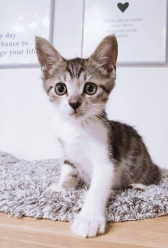 | 特徴(性格など) | 【仮名】あさりくん 【性格】ねじりんぼシッポがキュートなあさりくん☆ なにかイイコト思いつくとシッポをぐるんぐるん振って突進~! 甘えたい時はお膝に乗って人の顔や口元を両手でピタピタ。。。 兄妹以外とのお友達ともすぐに仲良くなっちゃう仔猫らしい子です。 まだまだ学習しなければいけない事もあるので一緒に過ごしているチャイくんとのお迎えをお願い致します。 ※1匹譲渡不可 |