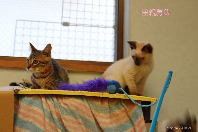 | 特徴(性格など) | キジトラ子猫、男の子、仮名:だいきくん 推定生後3ヵ月半くらい、体重:1.35kg(7/19現在) 健康診断済み、レボリューション済み、 トイレしつけ済み、 血液検査、ワクチン接種は、近日実施予定。 初対面でも少し撫でたらゴロゴロ甘えてくる子です。 猫とも仲良く、一緒に捨てられていた兄弟猫かずきくん、ゆうちゃんとも仲良く元気に遊んでいます。 7/26、初回三種混合ワクチン接種済み。 7/26、血液検査-エイズ・白血病-共に陰性。 8/23、三種混合ワクチン追加接種。 |