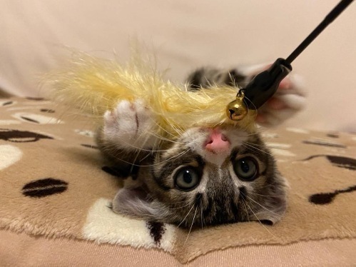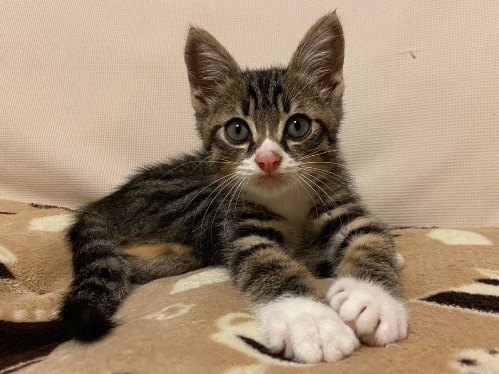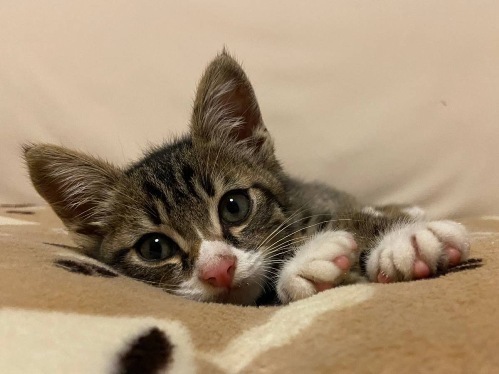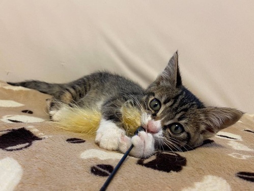 | 特徴(性格など) | 【仮名】吾輩くん 【性格】吾輩は猫であるにゃんこ「吾輩は猫である。名前はまだない。」 名前をつけてくれる家族を募集しているニャ('ω') ヒト大好き!遊ぶの大好き!ごはん大好き!寝るの大好き! 人が来ると「何してるのー?」と足元をウロウロします♪ 人の足が動くのが面白いのか突然飛んで来ては足をガブリ!! 楽しそうに逃げて行くイタズラ好きなやんちゃボーイなんです(笑) 元気いっぱいの吾輩くん!子猫らしく全力で遊び疲れると 電池が切れたようにパタッと寝ます(笑) 1人遊びも得意です♪ 置いてある物何でもおもちゃにします! 噛みグセがあるので同世代のにゃんことペアでのお迎えを希望します♪ ※1匹譲渡相談 |