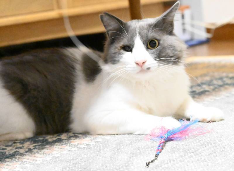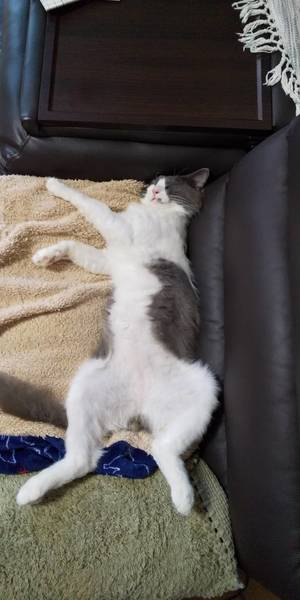 | 特徴(性格など) | ①抱っこや寝る時は顔を埋めるのが好きです。 ②体は大きいのですが、他の猫に唸ったり人を噛んだりかじったりしない優しい子です。 ③グレーの長毛ですが、家猫生活するにつれシルバーに近いきれいな毛並みになってきました。 ④キュルキュルと高い可愛い声で甘えてきます。 ⑤右目は見えてないですが、治療の必要はありません。 ⑥人が大好きで抱っこよりも何時も人が見える側にいます。 ⑦じゃらし、キャッチボール大好きです。 *猫より人間が好きなので一人っ子希望です。 |