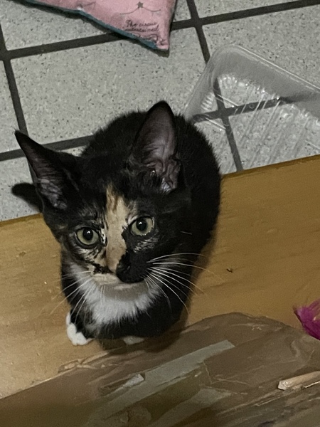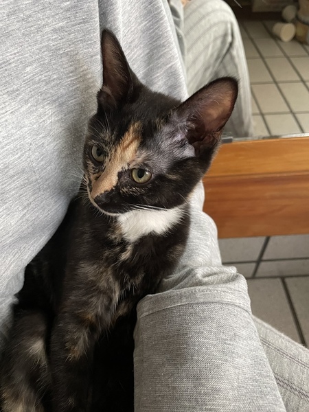 | 特徴(性格など) | 甘えん坊な三毛猫です 膝に乗るのが大好きで性格はおっとりしてます |