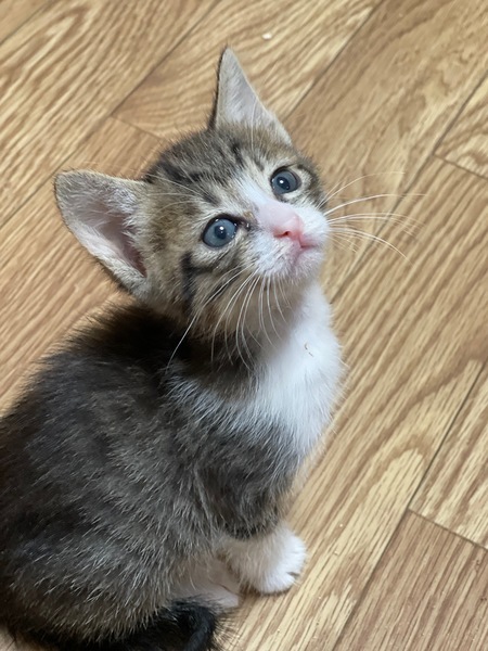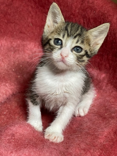 | 特徴(性格など) | 【仮名】マリアちゃん 【性格】臨月ママが移動したその晩に産んだ5兄妹です。 生後20日位からママの風邪を貰ってしまい母乳が飲めなくなりました。 それからはママから離れミルクで育ちましたので人馴れはしています。 子猫部屋を開けると寝ていても兄妹で一斉に駆け寄って来ます。 小柄で甘えん坊で兄妹の中では末っ子タイプ。 ちょっと困ったような表情で守ってあげたくなりますが芯は強そうです(笑) ミルク待ちが出来ず1番でもらう要領の良いところもあります。 風邪はすっかり治り兄妹と元気いっぱい走り回っています。 一緒に過ごしている兄妹か同世代のお友達とのお迎えをお願いします。 ※1匹譲渡不可 |