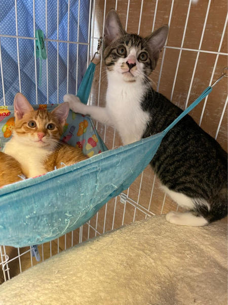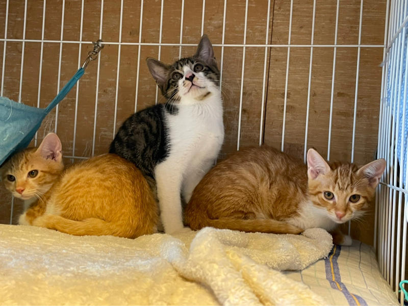 | 特徴(性格など) | 【性格】空き家で産まれた子猫達で、母猫さんはTNR後、地域猫として近隣住民の方に可愛がって貰ってます。子猫達は保護しました。 3匹兄妹の子猫達です。 因みに当たり前ですが、元野良猫の子猫ちゃんです。 保護した当初の様子などはYouTube『ちゅー猫チャンネル』にアップしておりますのでぜひ!ご覧ください。https://youtube.com/channel/UC4YseOceX9CQfZtgXTg83sw キジ白のかわいい男の子です。 男の子はじゅんくんだけなので、一番よく食べ、体もガッチリしているので大きくなりそうです。 とにかく遊びが大好きなのでおもちゃに反応します。おもちゃとちゅーるがあれば釣られてしまいます。 まだまだびびりくんですが、噛んだりひっかいたり猫パンチなどいっさいありません。 ご愛嬌のシャー!は偶にしちゃう時もあります。 抱っこもできますが、あまり好きではないようです。 普段は預かりさん宅のリビングを自由にフリーにしておりますが、夜はケージで寝かせており、ケージ飼いに慣らしてあります。 この子達にとってケージが安全な場所だと思っています。 ですので迎えてくださるご家庭は、必ずケージ飼いからのスタートでお願いします。(完全フリーにするとまだまだ隠れてしまいます。) お届けする頃には、もう4ヶ月になっているので、去勢手術をしてからのお届けとさせていただきます。 去勢手術済みの大きめの子猫となりますから、お仕事を半日ぐらいお待ちのご家庭でも全く問題なく迎えていただけます(譲渡会スタッフにご相談ください) もし?余裕がおありでしたら、お留守番の事を考えると二匹飼いをオススメします。 同じキョウダイの妹なみちゃんとのペアをオススメします(子猫一匹だと人間に依存しますが、二匹飼いだと猫同士で遊びあって成長して行くので、返って飼い主さんは二匹飼いの方が育てるのが楽です) とてもかわいい子達ですので、ぜひ!よろしくお願いします。 |