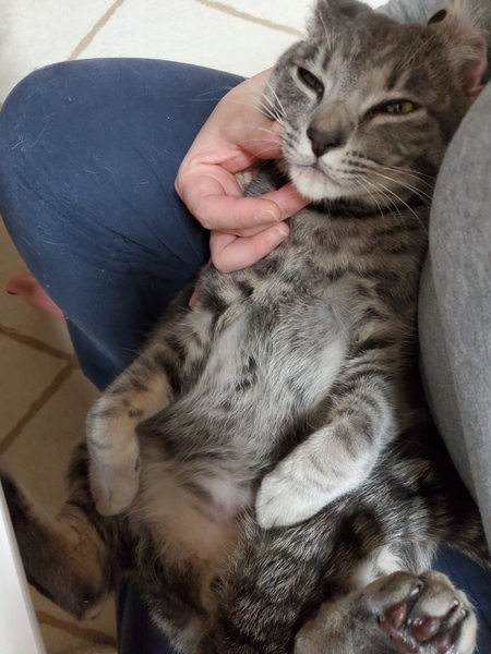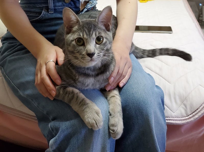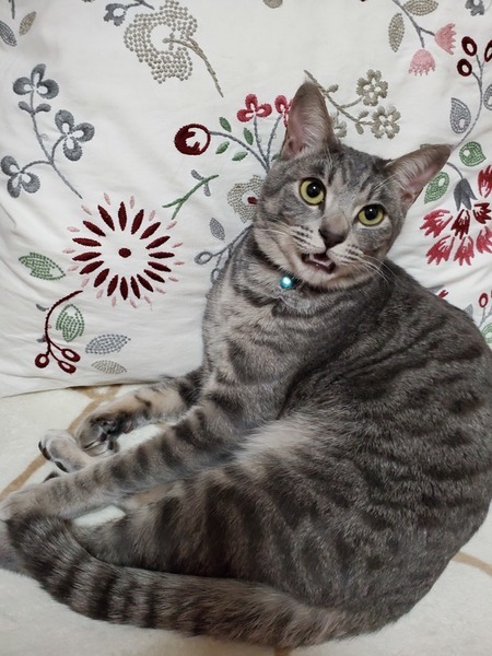 | 特徴(性格など) | サバトラ柄の美猫くん! とても甘えん坊で呼ぶだけでゴロゴロと喉を鳴らして膝に乗ってきます♥️ 初めての人にも構わず甘える、人が大好きな猫ちゃんです! 遊ぶのも大好きで玩具を全力で追いかけます☆ 爪研ぎは段ボール素材が好きでその他の物にはしません。 食欲も旺盛で元気な男の子です! |