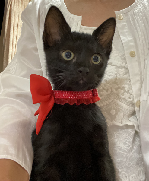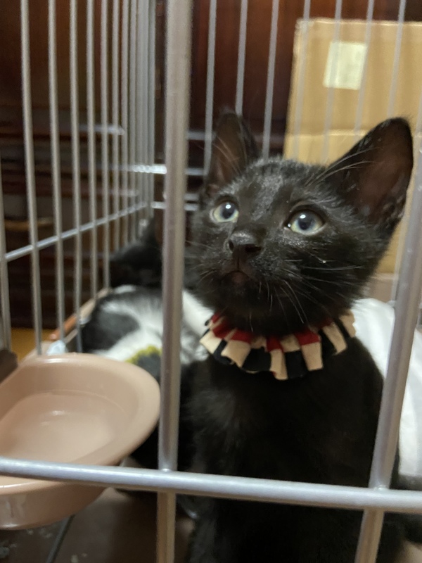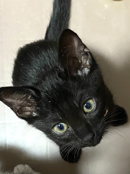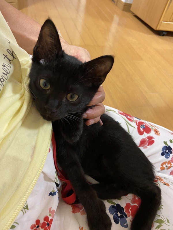 | 特徴(性格など) | お誕生日は5月20日 黒猫の男の子です。 甘えん坊で人懐っこく賢い子です。 素敵な目の色をしています。 ケージを開けるとぴょんとお膝の上に乗ってきて、ずっと抱っこできます。 人にも猫にもフレンドリーですよ〜 健康状態良好、元気いっぱいです。 検便検査2回済み、虫はいません。 爪切り済み。 3種混合ワクチン接種済み。 ウイルス検査済み(猫エイズ 白血病共に陰性) |