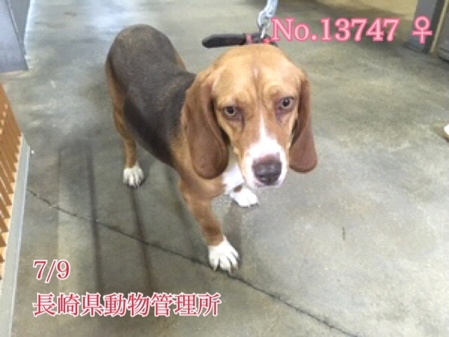 | 里親募集する理由 | 人が大好きな可愛いビーグルちゃん、とても穏やかで懐こくてまだ3歳位?に見受けられる女の子が寂しく助けを待っています! 訳も分からず突然連れて来られて収容され、どんなに寂しく心細いか。一日も早く温かい家庭の中で過ごさせてあげたいです。 ⭐️県外、遠方の方でも譲渡の条件が合い、良縁に恵まれましたら里親になっていただけますのでどうぞ宜しくお願い致します! ※募集内容を熟読し、必ずご家族とよく相談をされた上、ご家族全員の賛同を得られてからのお問い合わせ をお願い申し上げます。 ⭐️外飼いでは無く、室内飼育で家族の一員として迎えて下さる方、「引き渡し方法」のところにあります【アンケート】にご回答と共にお問い合わせをいただけますよう、お願い申し上げますm(_ _)m 7/9(金)長崎県雲仙市小浜町木場にて彷徨っているところを保護され保健所収容、飼主の迎えが無いまま期限が切れ長崎県動物管理所に移送されてきました。 ひとりぼっちでいつから彷徨っていたのか( ; ; )暑さや空腹、雨風にも苦しんだことでしょう。 それから保健所に、その後は管理所に移送されてきてずっと不安で寂しいと思います。。 標準サイズで現在の体重は見た目の推定になりますが大体10キロちょっと位でしょうか。 マテやお手などは知らないようですが、おやつを持っているとお座りしてくれます(^^) 人懐こく尻尾を振って寄ってきますし、直ぐにお腹を見せて甘え、誰が撫でたり触ったりしても大丈夫ฅ•ﻌ•ฅ 凄くこちらの目を見てくれて手からおやつも食べてくれてとても愛らしいです♡ 吠える事も殆ど無く、収容中の他犬にも穏やかに接しています。 優しい職員さん方が怖くないよ、今度こそは幸せになれます様にと毎日触れ合いながら、一生懸命にお世話してくださっています。 職員さんが連れ出してくれるお散歩では張り切って嬉しくて出だしはリードの引きは強めですが最初だけで普通に制御出来る程度、 でも急な走り出しや後退りからの首輪抜け・胴輪抜けなども想定し、どんな子であっても油断は禁物で脱走、逃走には充分な配慮と注意が必要ですm(_ _)m まだ若いこの子のペースや体力をみながら、躾や朝晩のお散歩などの運動の時間をしっかり取ることの出来るご家庭を希望しておりますm(_ _)m 捨てられたのでしょうか、迷子でしょうか。 何故ここに居なければならないのでしょう。 人間よりはるかに短い犬生なのに。 何故大切な家族を直ぐに探さないのか、 何故最後の時まで愛せないのでしょうか… 保護時、赤い首輪をしていましたが鑑札や迷子札などは何も付いていませんでした。 可哀想に、家族の元へ帰りたい、でも収容されたら帰れません。 言葉を持たない大事な家族を守る為に首輪、胴輪には迷子札・鑑札を必ずつけて頂きたい、そしてそんな悲しい状況のままでいたより保護されて良かったと考え、この子に幸せを、温かい本当の本物の家族を見つけたいと願っております⭐︎⭐︎ 人間が焦らずにゆっくり長い目で見守りながら、愛情を持って接すればこの子ならきっと新しい家庭に馴染んでいけるのでは、本当は思い切り甘えて遊んでほしいのだと思います。 辛かった過去がある事も踏まえ、人は怖くないんだよと、又人を信じてくれる様に広い心でドンとこい^_^と仰って頂ける方、この子をずっと尻尾フリフリ♪ニコニコの笑顔にしてくださる方、いらっしゃいませんか? どうぞ宜しくお願い申し上げますm(_ _)m ⭐️必ず室内飼育で、譲渡後には速やかな病院受診・健康診断(血液検査、尿便検査、ノミダニ・フィラリア予防やシャンプー等)避妊手術、混合ワクチンをする事が可能な、なるべくお留守番が少ない、沢山優しくスキンシップやコミュニケーションで触れ合っていただけるご家庭。 ⭐️室内でのトイレの躾も1からとなります。 まだ若く躾は入りやすいと思われますがそれまでには何かと手がかかり大変です。 覚悟と根気・理解で受け入れて下さる方。 ※譲渡後はお早めの避妊手術をお願いします。その際に歯石が有れば除去も一緒にお願いしますm(_ _)m (前歯は真っ白で綺麗ですが奥歯に歯石が見受けられます) ⭐️出来れば中型〜大型犬の飼育経験があり愛情を持って接することが出来る方、朝晩のお散歩や運動、スキンシップやコミュニケーションに充分時間をあてられる方、場合によりトレーニング教室なども視野に入れて考えてくださる方。 何卒宜しくお願い致します。 ※混合ワクチン、フィラリア予防実績、狂犬病予防接種、避妊の有無は不明です。 フィラリア陽性や妊娠の可能性も0では無くあり得る事となります(>_<) ⭐️(今のところ殆ど吠えませんが)吠えても大丈夫なご家庭。 以上の点を踏まえ、この子の置かれている状況、寂しかった、傷付いているであろう心をご理解のうえ、全て受け入れ寄り添っていただけるご家庭で終生可愛がっていただきたいと願っております。 保健所収容された全ての子達は身勝手な人