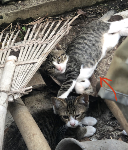 | 特徴(性格など) | グレー味がかった、顔の下など所々が白いキジトラです。 ご飯などの際は、喜んで元気に、慣れた人には甘えるように来ます! 兄弟に甘えたように構ってアピールをしたり、ちょっかいをかけたりする子です。猫じゃらしで楽しそうに遊びます!遊びが好きそうです! 譲渡してすぐは、臆病で慎重になると思いますが、時間をかけてこの子が心を開くまで待ってくださる方の申請をお待ちしております! |