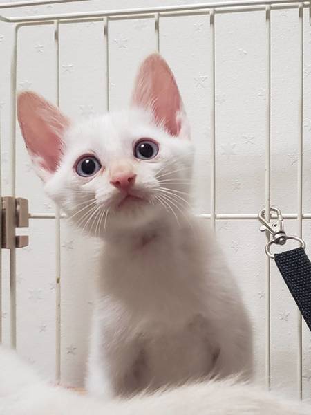 | 特徴(性格など) | ブルーアイ、耳と手脚の先、しっぽがミルクティー色のポイントカラーです。ちょっぴりびびりのみるくくん、幸せを呼ぶカギしっぽ。 写真は7月27日のものです。 随時更新予定です。 7月23日時点 体重620グラム ブロードライン1回済み 4兄弟のうち1頭ウイルスチェック済み(エイズ白血病ともに陰性) |
