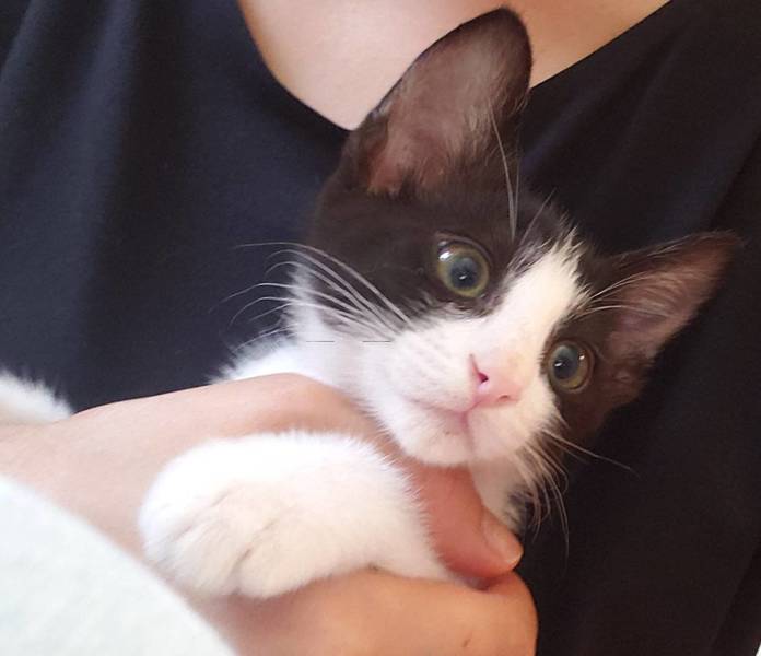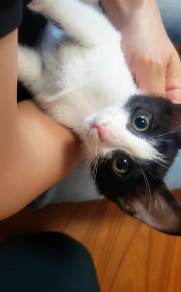 | 特徴(性格など) | 白黒ハチワレのイケメン男子です。 好奇心旺盛、元気いっぱいです。 抱っこなでなで大好きな甘えん坊さんです! 7月23日時点 体重660グラム ブロードライン1回済み 4兄弟のうち1頭ウイルスチェック済み エイズ白血病ともに陰性 |