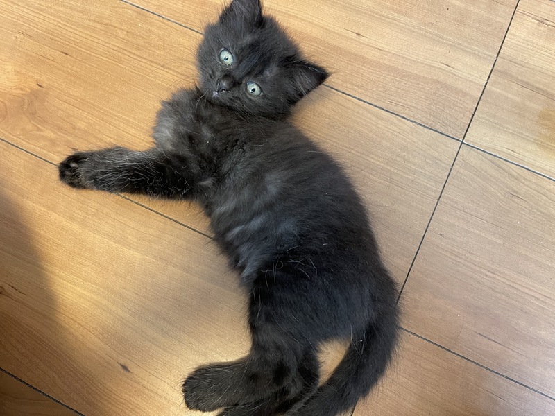 | 特徴(性格など) | 色は若干薄い黒で、特徴のある顔つきです! 正確は活発でおもちゃでよく遊んでいます。 トイレのしつけはできています。 とても人懐こいです。 |
