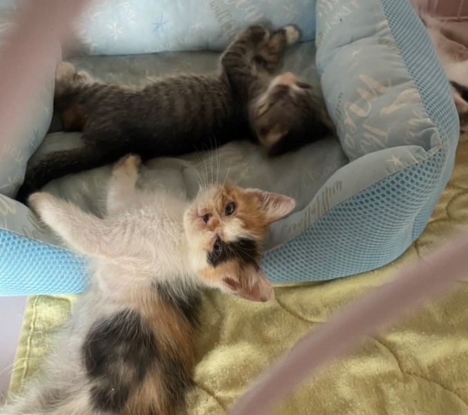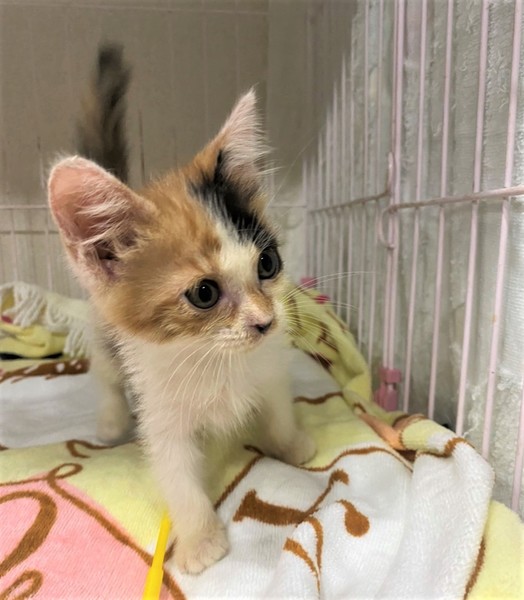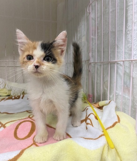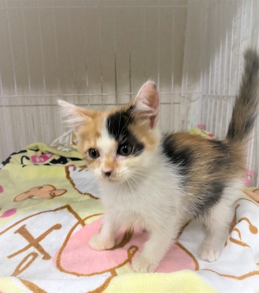 | 特徴(性格など) | くっきりミケ女の子 小さい時から人と接しているので、天真爛漫で甘えん坊です。 ミケ女の子・白黒男の子と6兄妹です。 |