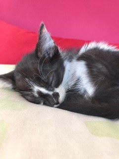 | 特徴(性格など) | 遊ぶときは、とにかくよく遊んでとても元気いっぱいの子猫ちゃんです。 病院へ連れて行った際は、とてもお利口さんで泣くことも暴れることもありませんでした。 日に日に毛並みも顔立ちも綺麗になってきています。 |