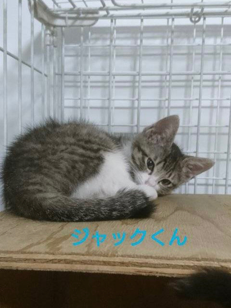 | 特徴(性格など) | 仮名「ジャックくん」 ワクチン済み、駆虫済み、ウイルス検査白血病、エイズ共に陰性 キジ白の男の子。 遊び好きな甘えん坊さんです。 食欲も好奇心も旺盛な元気な男の子です。 小学校高学年以上でしたらお子さんのいるご家庭、初めて猫を飼う方でも大丈夫です。 1匹での譲渡も可能ですが環境変化のストレス軽減の為に、兄妹のダイヤちゃんとお迎えして頂けるとお留守番や普段のお世話なども楽だと思います。 |