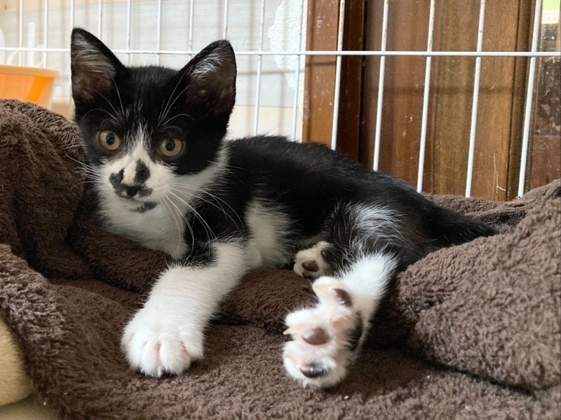 | 特徴(性格など) | ◆らくてんくん 懐っこい白黒男子 ●月齢の小さな子猫は、以下の条件についてご了承の上で応募をご検討下さい。 ◆高齢者のみのご家族からの子猫のお申し込みはお断りさせて頂きます。 ◆お留守番の少ないご家庭を希望します。 ◆小さなお子様のいるご家庭は状況によりお断りする場合がございます。 ○栃木県内で保護されました。 ○生後5ヶ月くらい(2021年9月下旬時点)の黒白男子です。 ○ハチワレのお顔に口元鼻周りの模様がお茶目。 ○まんまるお目目が愛らしい男の子です。 ○懐っこく、抱っこもだいじょうぶそう。 〇保護前に骨盤骨折をしていたようですが、手術の必要ないまでに改善されています。 うんちも普通に出ているので、生活に支障はありません。 ○まだ小さな仔猫のため、お留守番の少ないおうちをお待ちしております。 ★ワクチン1回済み。 ★猫エイズ、猫白血病ともに陰性。 ★不妊手術、マイクロチップ装着は成長と体調をみて実施予定です。 第8回コロナに負けるにゃー!おーあみ避難所バーチャル譲渡会 https://youtu.be/nczmqcjxIZ0 ○10/2(土)開催の譲渡会に参加予定! 以下の要項をお読みいただき、ぜひ会いに来てください♪ ☆★☆★☆★☆★☆★☆★☆★☆★☆★☆★☆★☆★☆★☆★☆★☆★☆★☆★☆ ~10月2日(土)市ヶ尾にて譲渡会開催!~ ◎場所・・「東急ドエル市ヶ尾プラーザビル2階集会場」 神奈川県横浜市青葉区市ヶ尾町1154-2 田園都市線「市ヶ尾」駅西口より徒歩約2分 ◎日程・・10月2日(土)(雨天決行) ◎時間・・13時から16時(受付は15時30分まで) (会場に利用可能な駐車場はございません。近隣のコインパーキングをご利用ください。) *3密対策のため、当日12時30分より会場にて全時間分の整理券を配布いたします。整理券枚数には限りがございますので、上限に達した場合はご入場できません。 *参加の際は、マスクの着用、アルコール消毒のご協力をお願いいたします。 *当日は検温の上、体温が37度以上の方はご参加いただけません。 *混雑状況により、中止させていただく場合がございます。 ※参加予定の犬猫は体調により参加できない場合があります。ご了承ください。 ☆★☆★☆★☆★☆★☆★☆★☆★☆★☆★☆★☆★☆★☆★☆★☆★☆★☆★☆ |